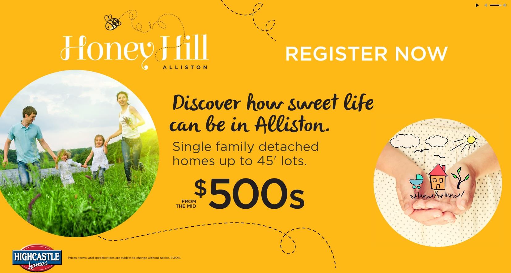 Honey Hill by Highcastle Homes is a new single family home development by Highcastle Homes currently in preconstruction at 6314 14 Line, New Tecumseth. The development is scheduled for completion in 2022. Sales for available units start from the high $500,000’s. Honey Hill by Highcastle Homes has a total of 160 units, with 7 quick move-in homes currently for sale.